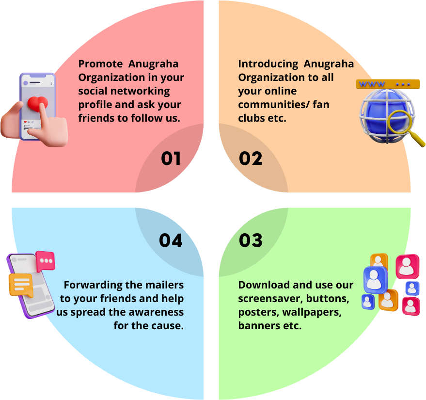 if you have a passion to support a cause and that pull within, you can still make a child smile, help a woman fight all odds to come on top, or, even brighten up the life of the homeless elderly couple – all this without it being any demanding on your daily routine.  You can instantly sign in as a Cyber Volunteer for The Anugraha Organization®   and you can start contributing by: